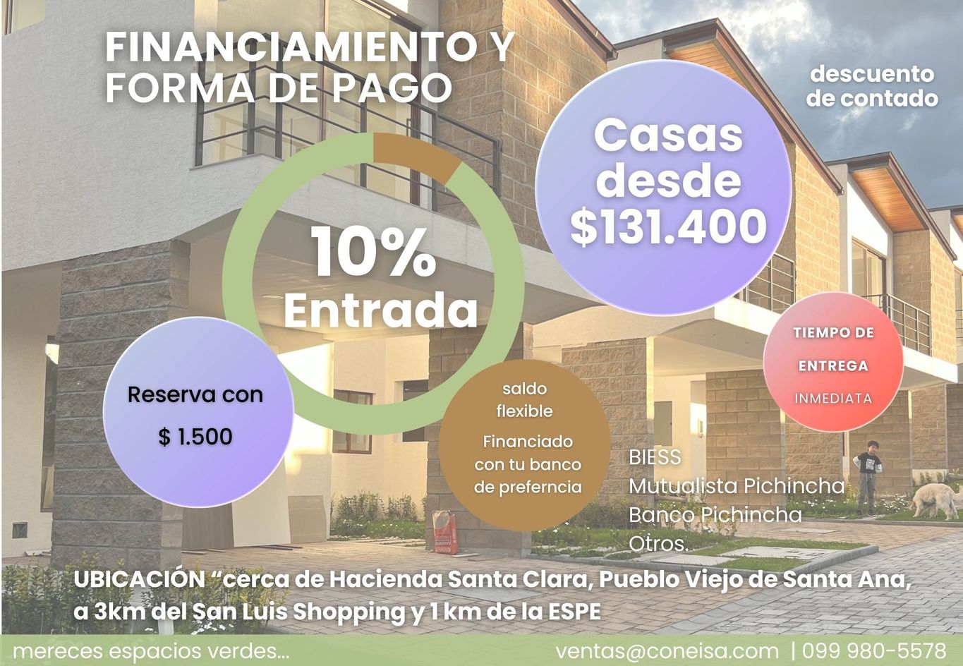 Te asesoramos con el mejor método de pago para que puedas invertir en tu futuro, porque MERECES ESPACIOS VERDES.